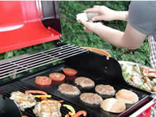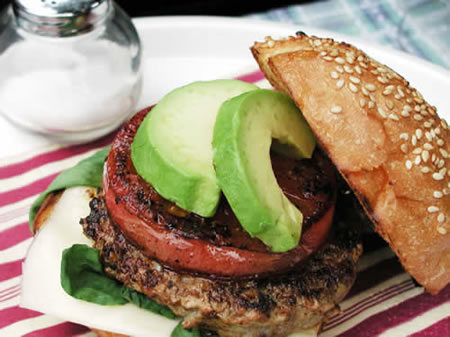 3. 鉄板を熱し、油をしき、2)を焼く。隣で輪切りにして塩コショウしたトマトとバンズも焼く。
